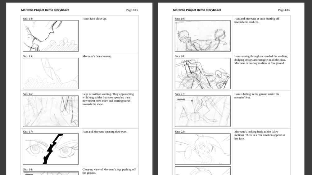 The package includes storyboard in 3 languages: English, Russian and Chinese.